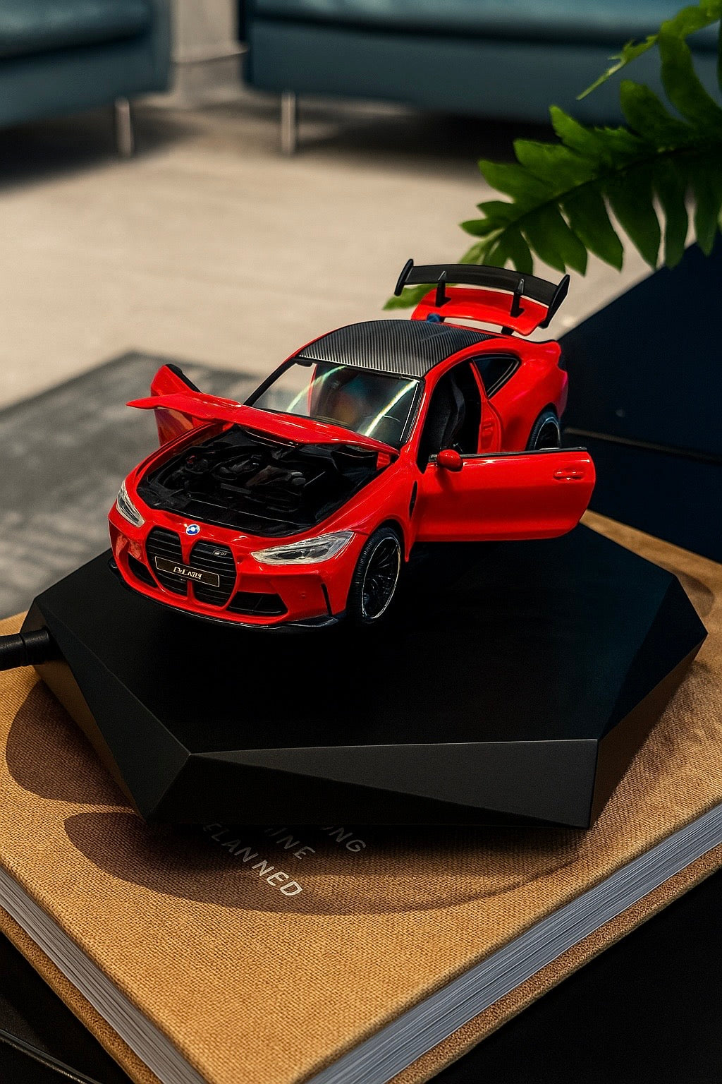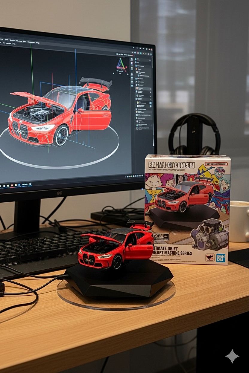 Experience engineering magic with this scale model of the BMW M4 Competition, designed to levitate gracefully above a sleek hexagon-shaped base using advanced electromagnetic technology. A perfect fusion of precision, performance, and innovation—this floating display piece is a true collector’s item that captures the spirit of BMW in motion, even while standing still.